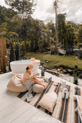 และด้วยความฮิตของยุคนี้ ที่พักหลายๆที่มักดึงจุดขายด้วยอ่างแช่น้ำ ที่นี่เลยจัดอ่างมาให้ 2 อ่างไปเลย ทั้งในห้องที่วางอยู่หน้าห้องน้ำ ใต้ที่นอนชั้นบน และมีจุดนึงคือระเบียงห้อง ทั้ง 2 จุดให้ฟีลลิ่งต่างกัน ใครชอบ Indoor ใครชอบ Outdoor หรือจะเบิ้ลแช่ทั้ง 2 อ่างเลยก็ได้