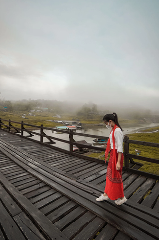 สังขละบุรี เป็นอำเภอที่ตั้งอยู่จังหวัดกาญจนบุรี บริเวณที่เรียกว่า "สามประสบ" เป็นจุดที่แม่น้ำทั้ง 3 สายมาบรรจบกัน คือแม่น้ำซองกาเลีย, แม่น้ำบีคลี่ และแม่น้ำรันตี ผู้คนต่างพากันมาชื่นชมหมอกที่มาให้เห็นทุกเช้า วิถีชีวิตของชาวมอญที่อาศัยอยู่ในพื้นที่ รวมถึงวัฒนธรรมสำคัญของชาวมอญ ไม่ว่าจะเป็นพิธิตักบาตรมอญ การแต่งกายแบบชาวมอญ และที่พลาดไม่ได้คือ 'สะพานมอญ' สะพานไม้ที่ยาวที่สุดในประเทศไทย ยาวเป็นอันดับ 2 ของโลก รวมถึงการล่องเรือชมเมืองบาดาล ที่ถือได้ว่าเป็น Unseen Thailand ซึ่งเวลาปกติสะพานไม้นี้จะหนาแน่นไปด้วยผู้คน แต่ด้วยสถานการณ์โควิดทำให้เราได้รูปเดี่ยวบนสะพานไม้ที่ทอดยาวสุดสายตา เป็นภาพที่หาดูได้ยาก